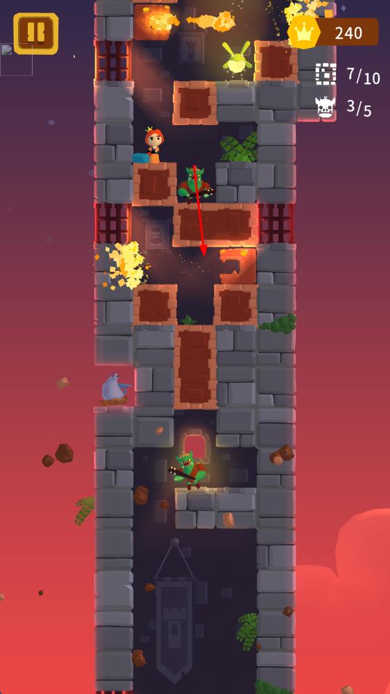 3、当成功突破12层关卡的所有挑战,击败顶层的最终阻碍,公主便登顶塔楼,完成这场从接过战锤到战胜危机的冒险,达成游戏目标。