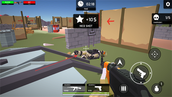 支持无网络单机游玩,随时开启射击体验,也能与好友联机互动,既可组队协作完成任务,也能相互对抗比拼射击技巧,玩法灵活多样。
