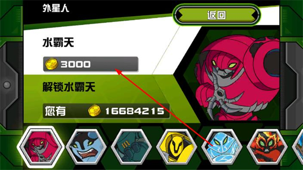 3、消耗对应的金币资源,点击解锁/升级按钮,即可获得该外星英雄或提升其能力。