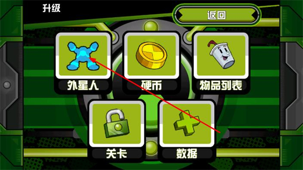 2、在升级页面中,选择外星人分类,找到想要解锁/升级的外星英雄。
