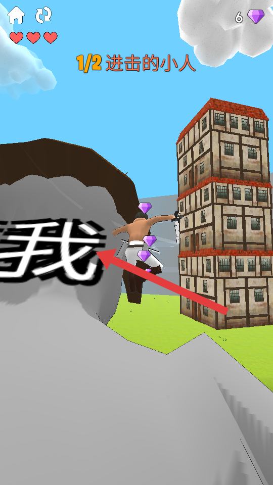 2、进入关卡后,点击角色可控制其行动,开始追击进击的小人,这是完成关卡任务的基础操作,通过追击可积累资源进度。