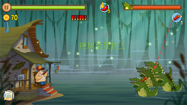 4、面对多只鳄鱼时,拖放道具至怪物上,造成范围伤害,击败鳄鱼群。