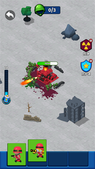 3、解锁火箭炮兵种后,部署其攻击敌方建筑,造成大范围伤害,快速推进关卡。