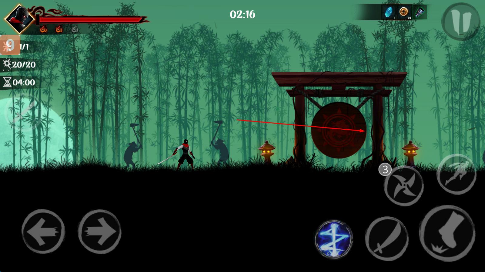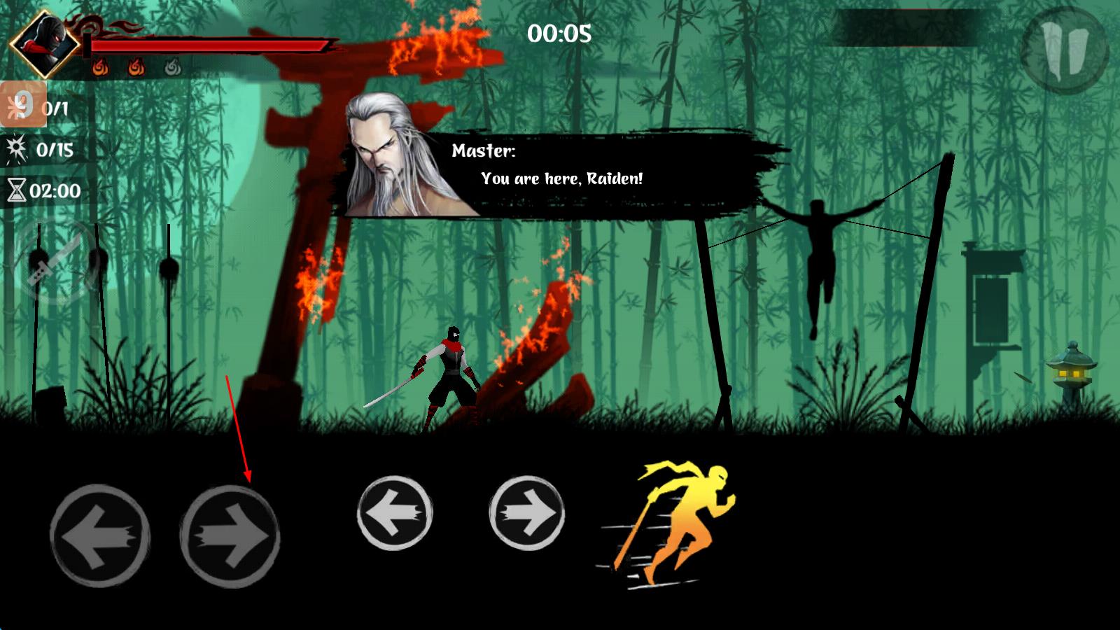 1、操控忍者武士移动,利用左右方向键调整位置,接近敌人或目标区域,留意场景障碍与敌人动向,按冲刺键可快速突进,灵活走位应对挑战。