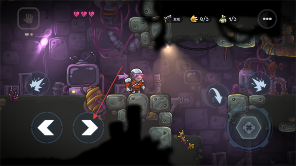 1、通过左右箭头按钮控制角色移动,场景有电视类物品,保持角色探索区域。