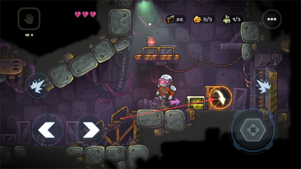 2、移动角色至新区域,找到带箱子的平台,点击右侧箭头可切换交互功能。