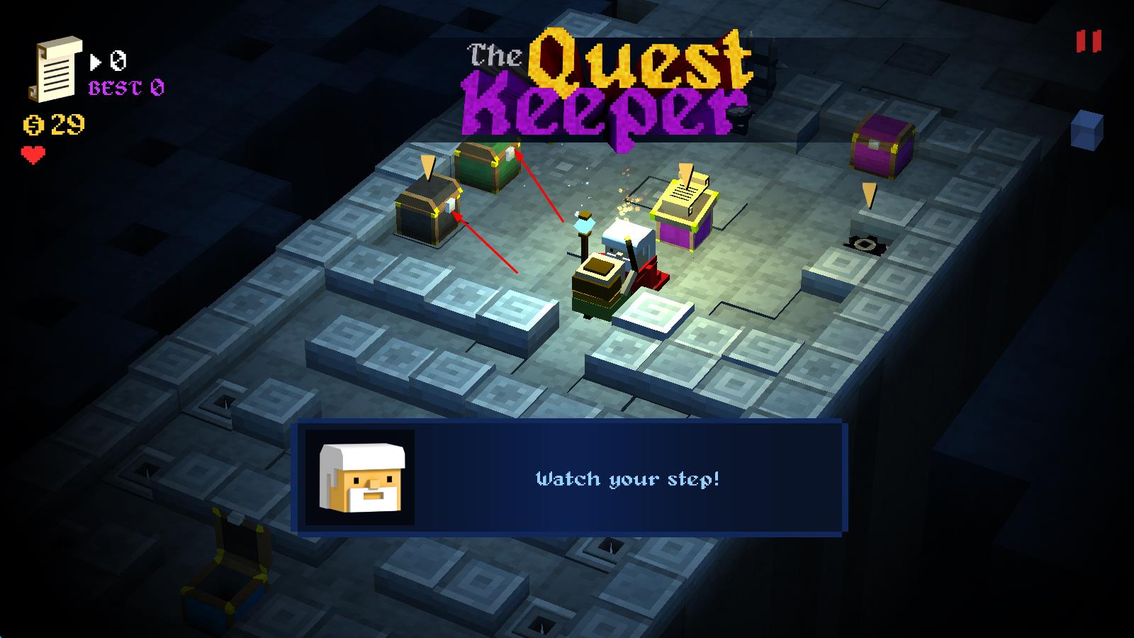 1、《任务守卫者》由Tyson Ibele打造,是一款以地牢为主题的游戏,立体像素风的画面,与《天天过马路》相似的操作和视角,玩家要接受一系列任务,不断在地牢中闯荡冒险,走得越远越好。