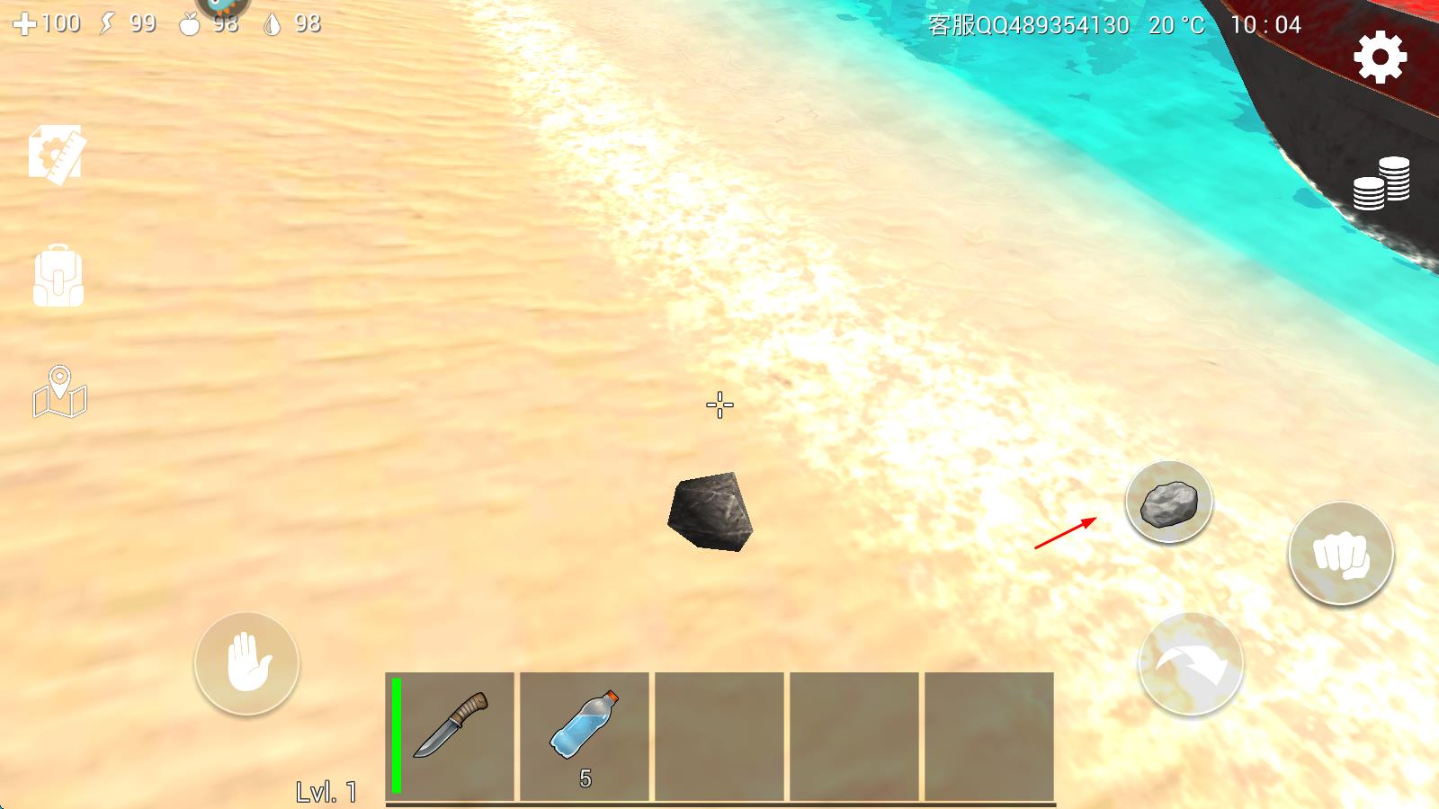 3、生存的必需品食物也是必不可少的,淡水也同样重要,并且玩家有三个属性值,包括生命值、饥渴度和饥饿值,过低都会影响你的存活;