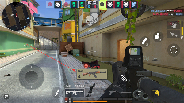 4、持续战斗,完成双杀等连杀操作,同时可拾取敌人掉落的AK-47等武器增强战力。