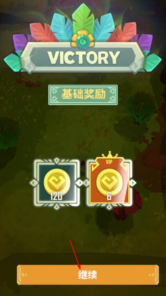 3、战斗胜利后,进入结算界面,获取基础奖励,点击“继续”按钮,推进游戏流程,开启新内容 。
