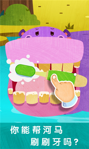 手指滑一滑,用小鸟的嘴巴为河马清洁口腔,抓住虫子抹上药膏,伤口再也不疼啦!