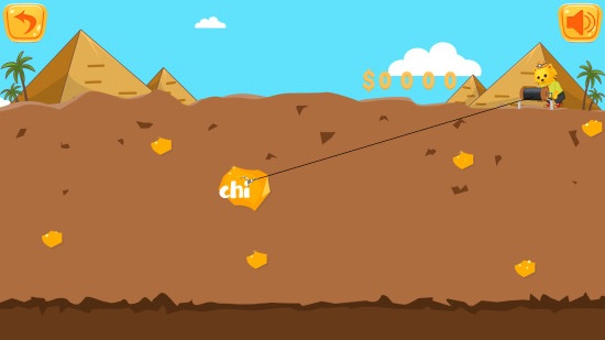 除了砸金蛋游戏之外孩子还能体验挖金矿的游戏,这个游戏可以检验孩子对拼音的辨认能力;