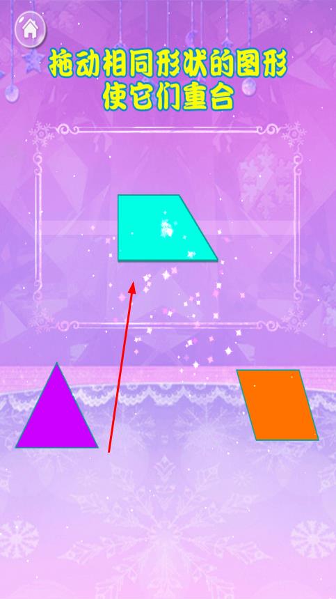 2、以形状识别模块为例,根据提示拖动相同形状的图形使它们重合,找到下方与上方轮廓形状相同的图形,用手指拖动,将其移动到轮廓位置,完成形状匹配学习。