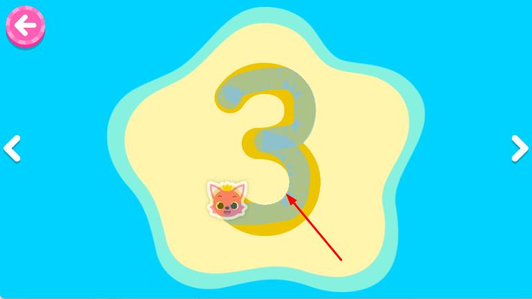 2、在具体的学习场景中,数字绘画环节,会出现数字,按照箭头指引,沿着线条用手指或触控笔进行描绘,认识数字的形状。
