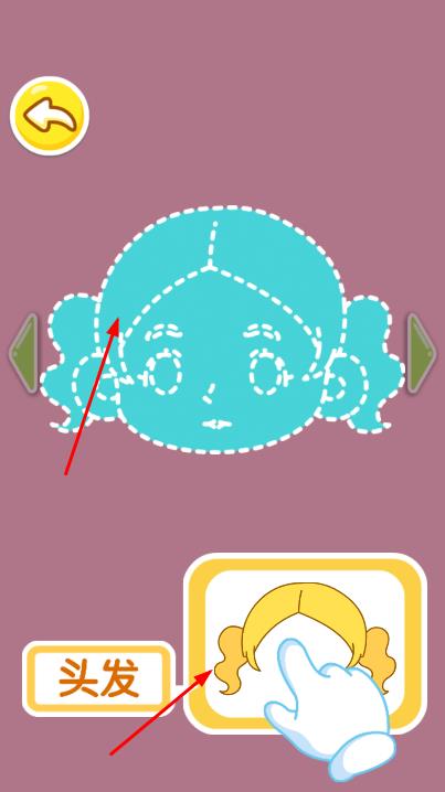 2、根据提示点击下方的头发图形,将其拖拽到上方的人物头部轮廓对应位置。