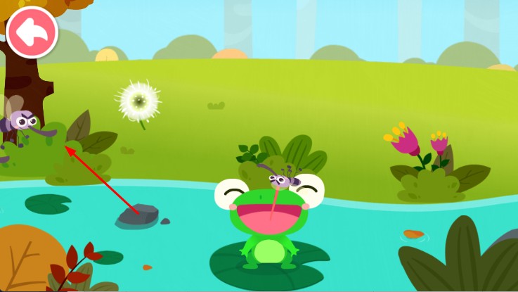 2、在互动关卡,如青蛙捕食 ,按提示操作帮青蛙捕捉昆虫,完成小任务学习动物知识,推进冒险进程。