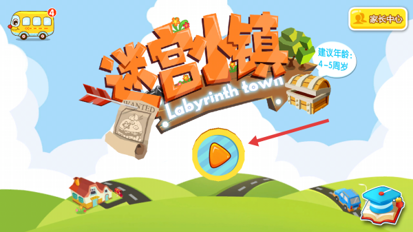 1、点击迷宫小镇Labyrinth town启动页播放按钮,进入卡通地图界面,操控熊猫角色,开启小镇探索。