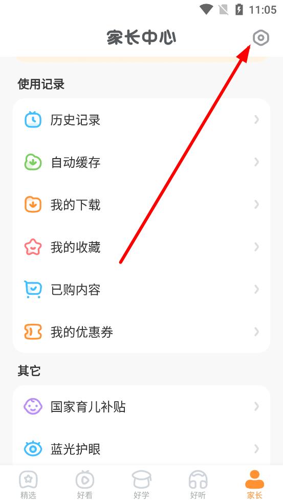1、打开宝宝巴士应用,点击底部导航栏中的家长选项,进入家长中心。