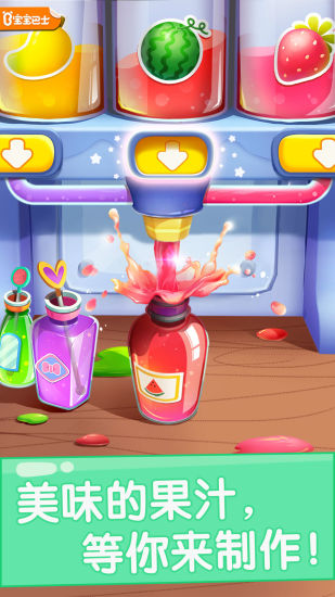 还有各种神奇的机器等你操作,点一点,按一按,转一转,原来制作果汁也可以很简单!想成为最具人气的果汁商店老板吗?来【宝宝果汁商店】,制造出最受世界欢迎的招牌果汁吧!创造属于你的烹饪日记!
