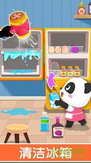 卫生间里好脏,快来打扫一下!清理讨厌的小虫子,再给马桶喷上清洁剂和杀菌药水,刷完一按冲水建--咦,水下不去?原来是水管坏了,宝宝快来接好它!(锻炼宝宝逻辑思维能力)冰箱里结满了冰,不能放食物了。清理冰块,把水擦干,再把饮料,肉类,蔬菜等分类整理好!(锻炼宝宝归类整理的能力)宝宝,你家务干的真棒!妙妙送了你一枚小勋章!