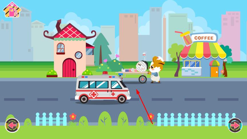 2、选择交通工具后,交通工具会出现在场景中,卡通角色也会在场景中进行相应的活动,通过这种方式,认识不同的交通工具。