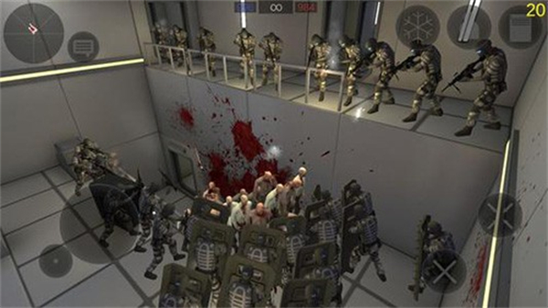 4、通过射击按钮瞄准僵尸,持续攻击,消灭沿途僵尸,推进游戏关卡。