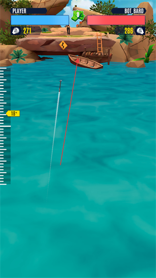 2、根据场景地形如水域、岩石区和距离,精准调整角度,确保箭的轨迹准确。