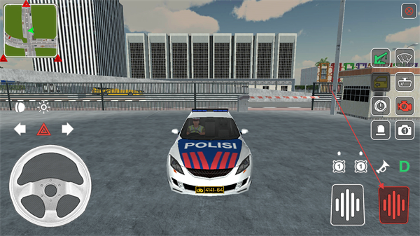 3、将人物移动至警车旁,点击车辆图标可切换至驾驶模式,还可操作喇叭、警灯等功能。