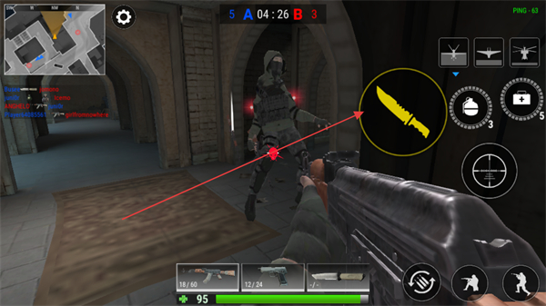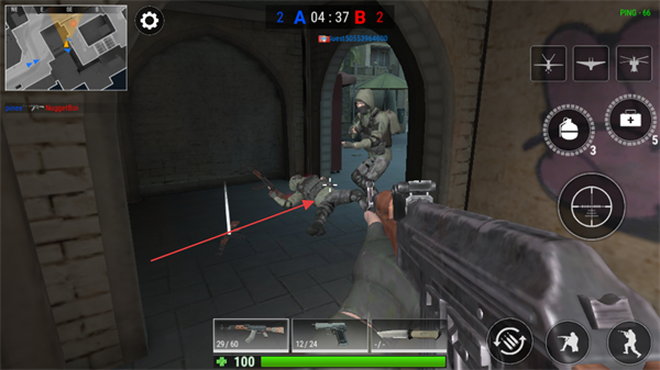 3、持续与敌方交火,根据战局切换枪械/近战武器,积累击杀数提升己方分数。