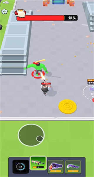 4、传送后遇到绿色丧尸目标,操控角色靠近并使用武器发起攻击,击败丧尸可完成关卡目标,积累游戏资源。