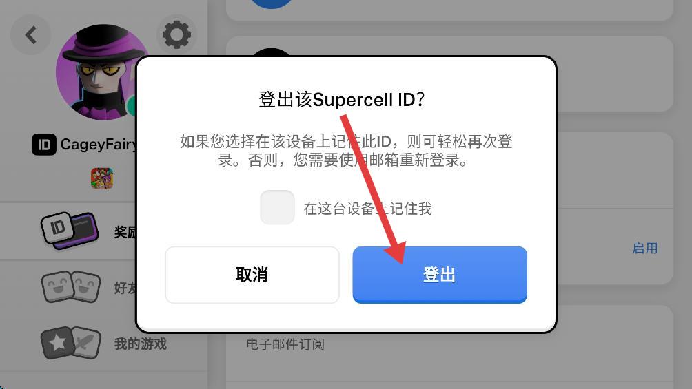3、在ID的设置页面,找到并点击登出选项。