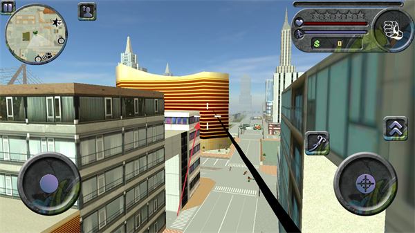 采用虚拟摇杆与技能按键的经典布局,绳索发射、攻击、移动等操作直观易懂,新手快速熟悉就能灵活施展超能力,专注于探索与战斗本身。