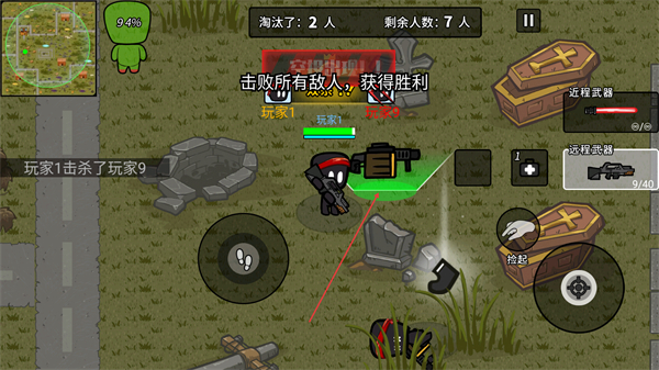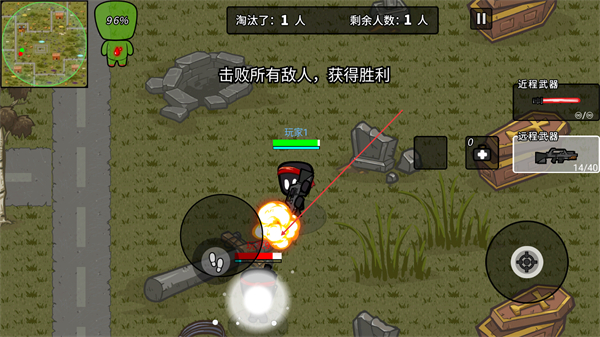 3、持续攻击敌人,累计淘汰数,逐步清空战场剩余对手。