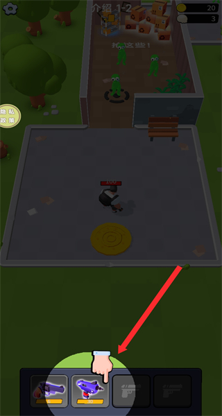 4、切换武器后,操控角色靠近标有抢这些的区域,攻击该区域内的丧尸,完成目标的同时获取奖励。