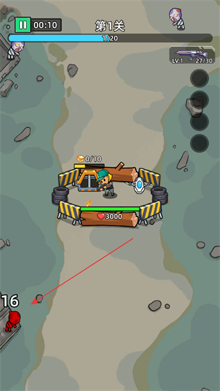 1、在第1关守护建筑,建筑有3000血量,需抵御敌人进攻。