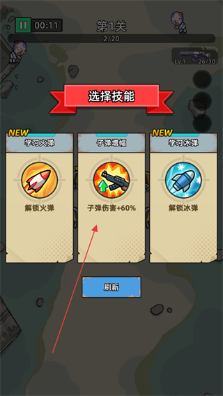 3、选择技能,如子弹增幅子弹伤害+60%,提升攻击能力。