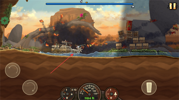 1、驾驶车辆在荒漠中行驶,上方进度条显示行驶进程,不断推进距离。