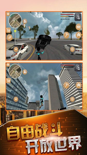 钩锁能讲远距离的目标人物神不知鬼不觉地抓取到你面前,甚至可以将目标逃窜搭乘的车辆、直升机往回拖拽。游戏背景设定在异国的繁华都市,由于种种问题,导致了诸多黑帮的崛起,玩家扮演火柴人正是为了瓦解这些势力。