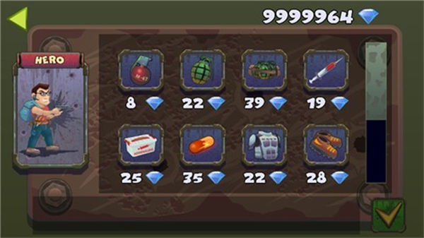 3、击杀僵尸获得金币、钻石等资源,可升级武器,界面上方的道具图标点击即可释放,用于清理密集僵尸群。