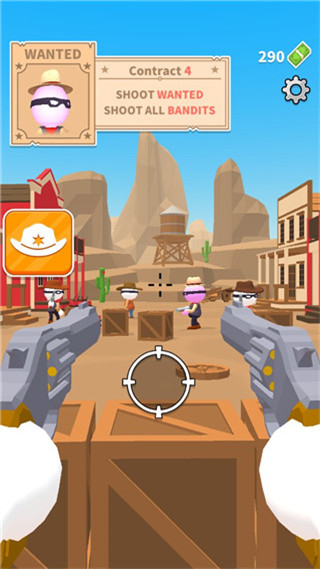 可解锁左轮、步枪等西部经典武器,通过射击成果获取资源升级武器威力与射程,适配不同关卡需求。