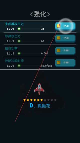 4、使用战斗获得的黄色方块在强化界面提升主武器攻击力、导弹攻击力等属性增强飞机实力。