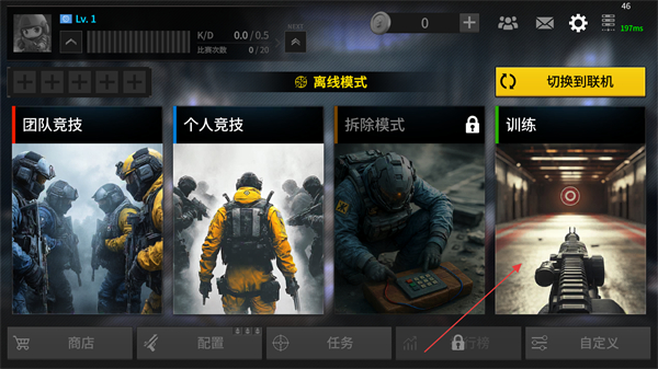 开局即提供完整教程指引和专属训练模式,教程步骤清晰易懂,跟随引导就能快速掌握基础操作,训练模式可反复练习枪法与走位,帮助夯实操作基础,为后续竞技对战做好充分准备。