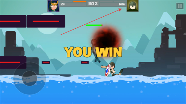 3、击败敌方后,屏幕显示YOUWIN,完成单局胜利。