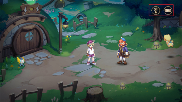 4、也可以点击屏幕右上角的加速按钮来进行对话的加速,或者是点击【跳过】按钮,来进行对话的跳过;