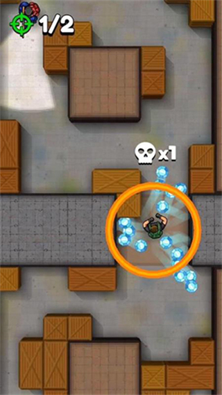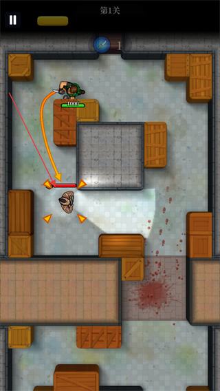 4、继续寻找并攻击剩余敌人,利用轨迹线瞄准,完成关卡。