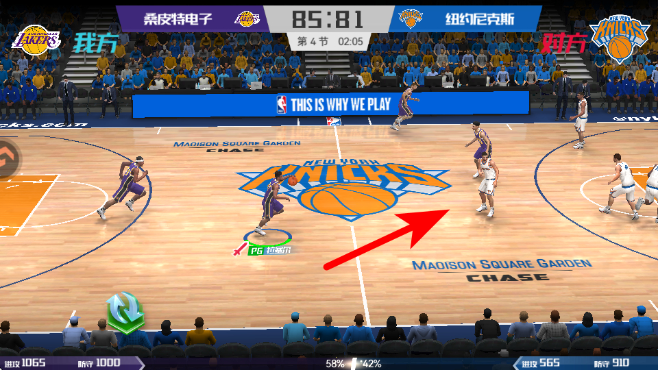 4、在比赛对战界面,可观察球员在球场上的实时表现,通过操作球员传球、投篮、防守等,参与比赛并争取胜利,同时可获得经验、道具等奖励。