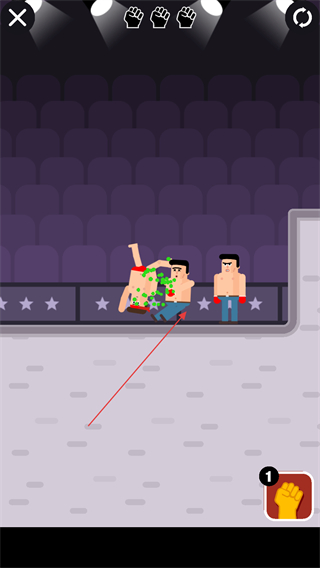 2、发射拳头攻击,击中对手后使其与其他对手产生碰撞。