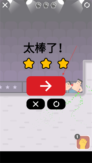 4、成功击败所有对手后,获得三星评价,点击箭头按钮进入下一关。