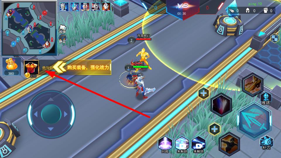 4、点击购买装备提示区域,可进入装备商店购买装备,强化角色战力,提升生存输出能力。