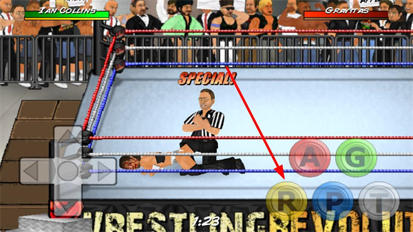 4、黄色R键点击可发动地面攻击,在对手倒地时使用,能对其造成持续伤害,压制对手使其难以起身。